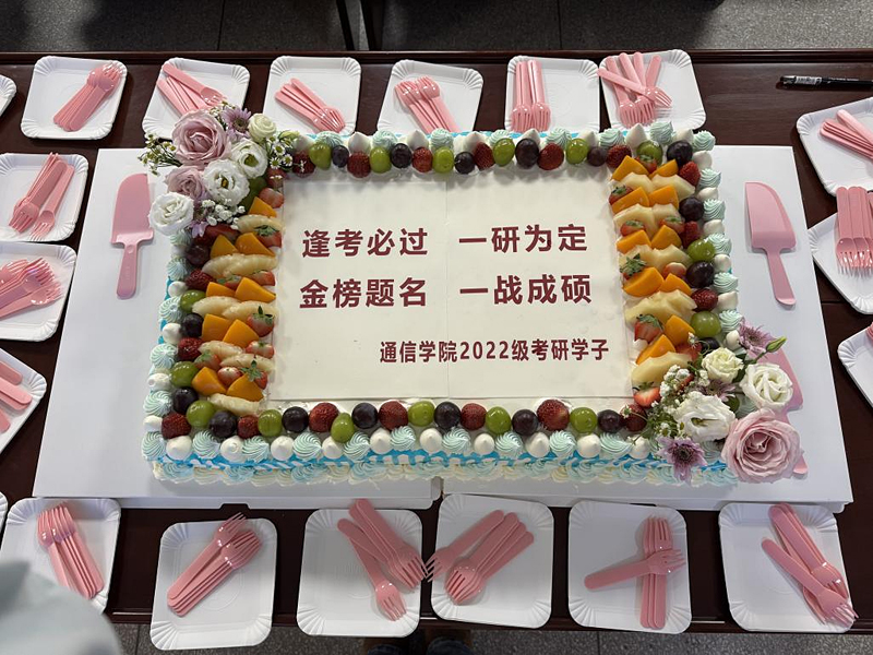 为缓解备考疲惫、增添甜蜜期许,学院特意为全体考研学子定制了“逢考必过、一‘研’为定,金榜题名、一战成硕”的祝福蛋糕。象征学子们的辛勤努力与美好未来。蛋糕不仅传递了学院的关怀与鼓励,更激励每位考研学子勇往直前,梦想成真。