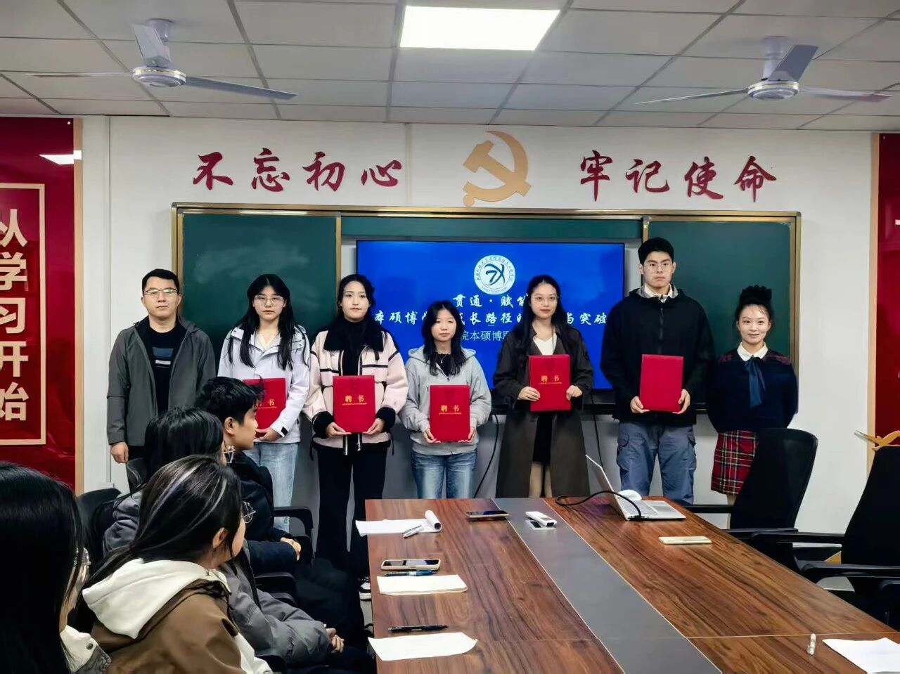 活动伊始,王婧婕和陈振兴共同为参与分享的博士生与硕士生代表颁发聘书,表彰他们积极投身“传帮带”的示范作用。简短而庄重的仪式不仅增强了活动的正式感,也进一步激发了在场师生的交流热情。