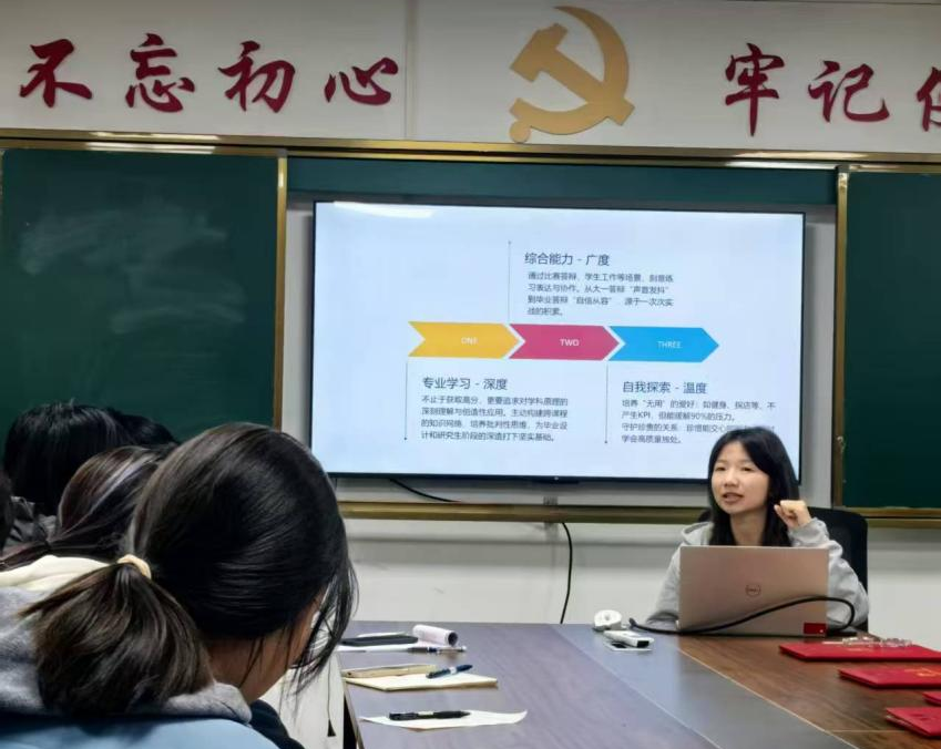 晏蕊则聚焦“本科阶段的综合能力衔接”,从专业学习方法切入,分享如何平衡专业课深度与知识广度,同时强调沟通协作、时间管理等综合能力对学术成长的支撑作用;她还结合自身经历,细致拆解保研准备的关键节点——从成绩保持、科研经历积累到推荐信获取,为有保研意向的本科生提供了清晰的行动指南,助力其通过自我探索明确学术发展方向。