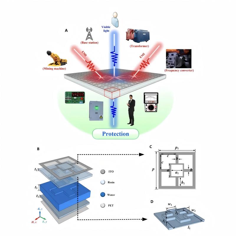 近日,我们黄晓俊教授团队联合南京航空航天大学等单位,在电磁防护领域取得重要突破,成功研发出一种光学透明水基超材料吸收器。该成果被誉为“透明电磁盾牌”,发表于国际顶级期刊《Advanced Science》,为解决煤矿井下复杂电磁环境下的设备干扰问题提供了全新方案,也彰显了我们在超材料领域的创新实力。